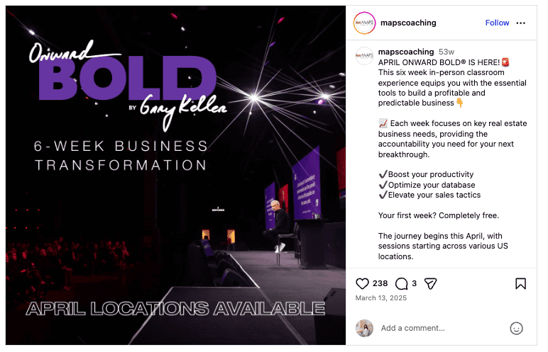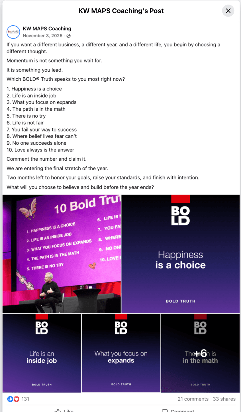 Video-forward, presentation style, his voice front and center... a format Keller William's MAPS socials had never used before.