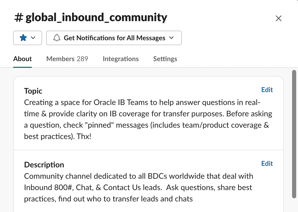 To unify our global teams on this new Market Strategy, a slack group of 289 individual employees was created to help answer questions in real-time and provide clarity on inbound coverage for transfer purposes.