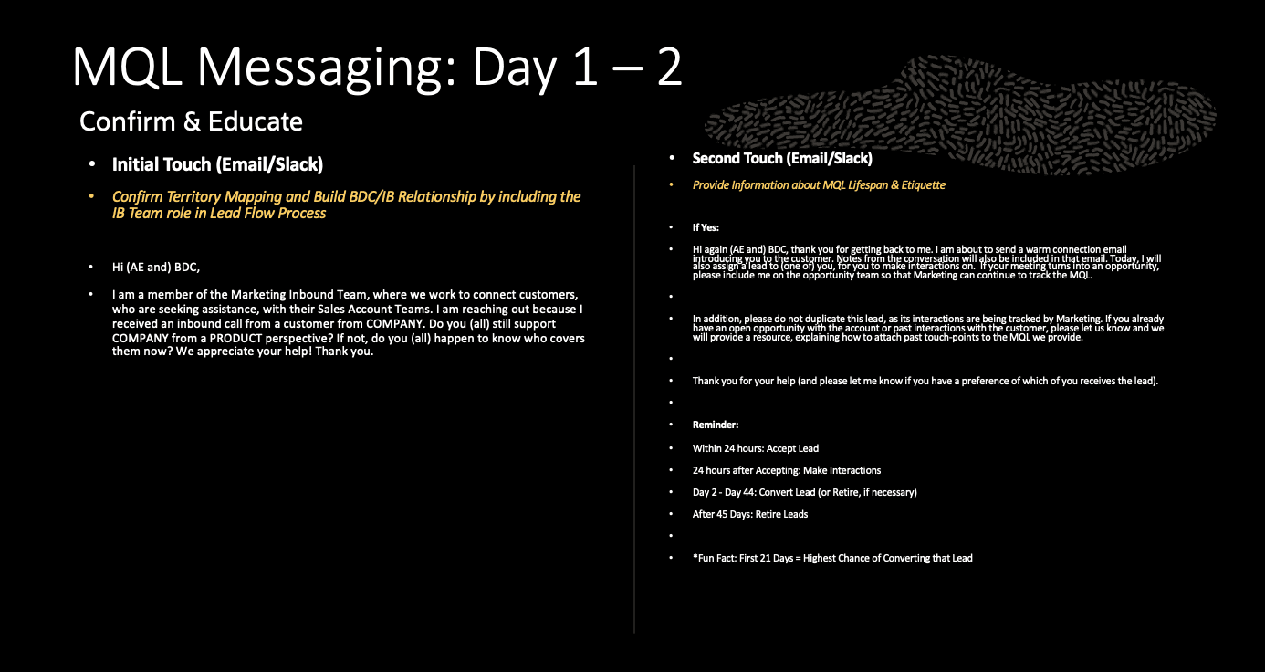 There was no internal unification of communication across global inbound sales teams or established best practices for our inbound sales and chat customer messaging. We received many customer complaints of poor inbound customer service, sales follow-up, and slow warm lead conversion resulting in decreased inbound lead conversion.